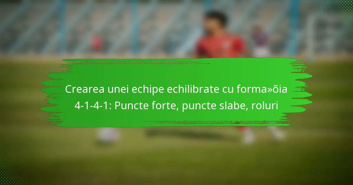 Formația 4-1-4-1 include un singur mijlocaș defensiv, patru mijlocași și un atacant, creând o abordare echilibrată atât în apărare, cât și în atac. Rolul fiecărui jucător este crucial pentru menținerea structurii echipei și eficienței pe teren.