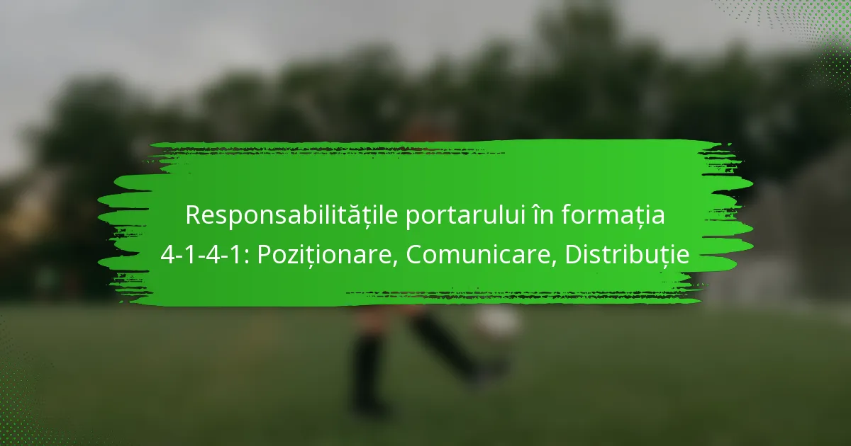 Responsabilitățile de bază ale unui portar într-o formație 4-1-4-1 includ o poziționare eficientă, o comunicare clară și o distribuție precisă. Aceste elemente sunt cruciale pentru menținerea solidității defensive și facilitarea jocurilor ofensive.