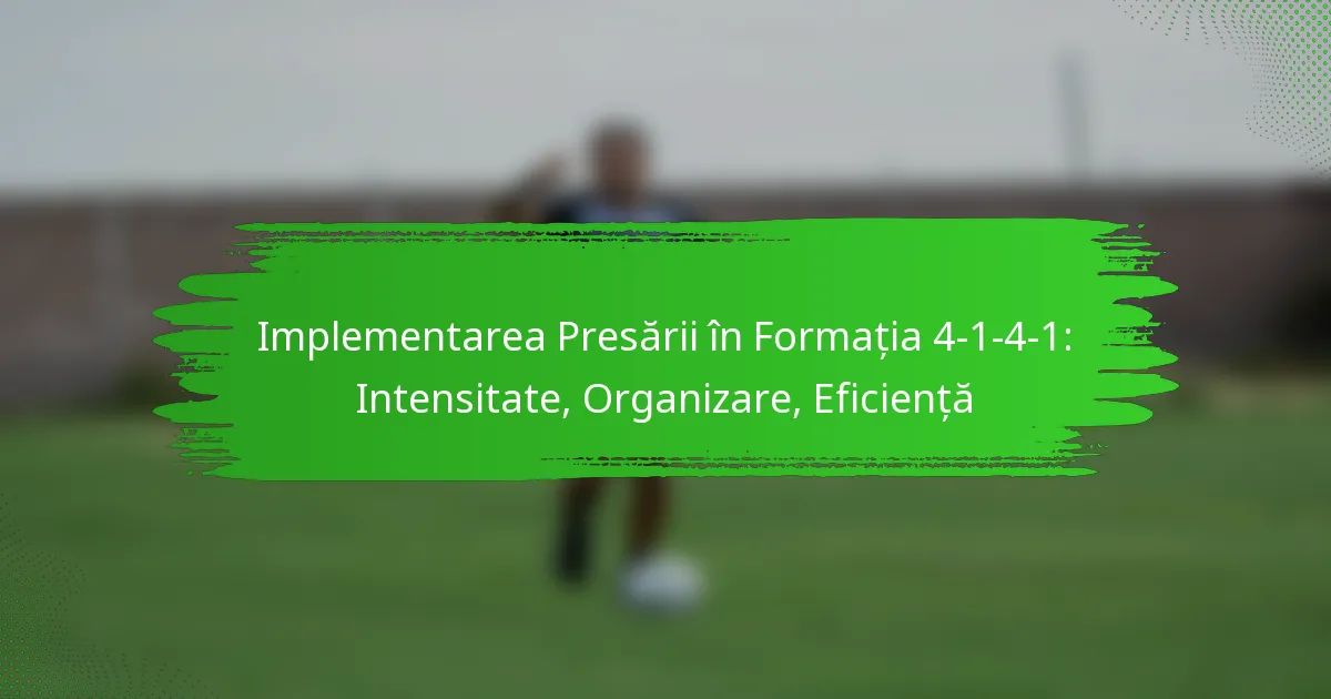 Implementarea presingului în formația 4-1-4-1 necesită o strategie coerentă care pune accent pe intensitate, organizare și eficiență. Această abordare se concentrează pe rolurile jucătorilor, conștientizarea spațială și comunicarea pentru a perturba jocul adversarului, menținând în același timp o poziție solidă de recuperare.